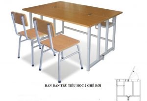 – Bàn liền ghế rời bán trú 2 chỗ tiểu học: gồm bằng gỗ MFC và gỗ cao su